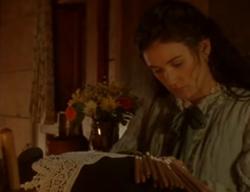 Paličkovaná krajka byla nejcennější součástí šatů. I když na výrobu krajky byla třeba zručnost, její vzácnost a vysoká cena vyplývaly